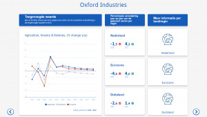 Veel van de informatie op dit dashboard is overgenomen uit de oude BI portal. Zo vind je er de economische voorspellingen en veranderende toegevoegde waarden binnen verschillende sectoren onder de knoppen van Oxford Economics, de Purchasing Managers’ Index (PMI) onder de knop van Nevi en het FEDA maatwerkrapport onder de knop van het CBS. Ook alle volledige rapporten zijn beschikbaar. Daarnaast wordt er informatie van bijvoorbeeld Nederlandse banken gedeeld onder de knop Rapporten.